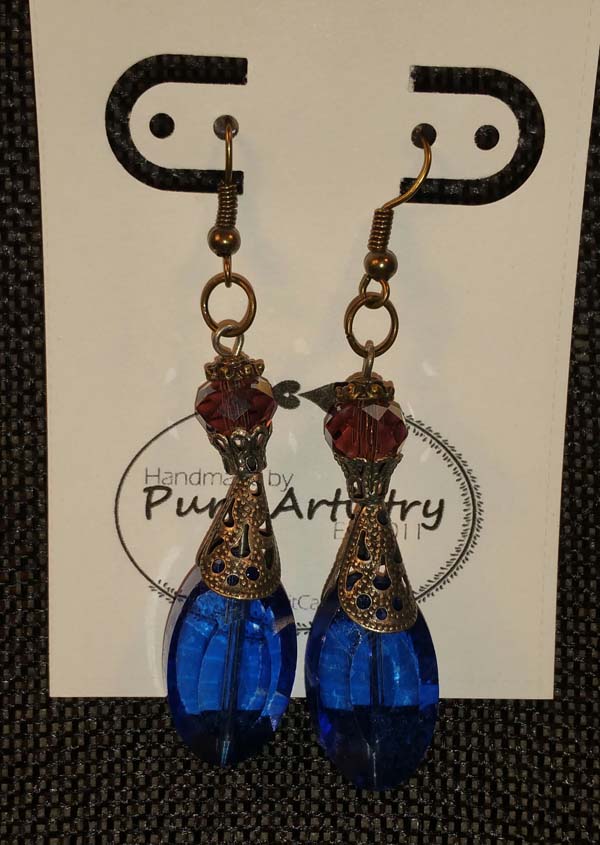 Blue glass bead earrings adorned with antique metal.